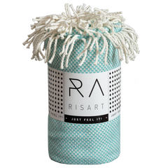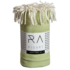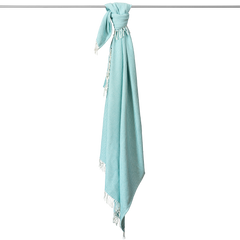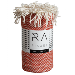 - terminado en dos de los extremos con un fleco color crema